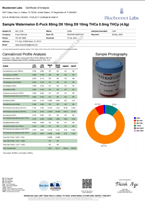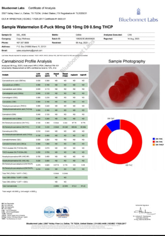 ENJOY Watermelon - PARADISE 3000mg Live Rosin THCA/D9/THCP/D8 Gummies (Hybrid)